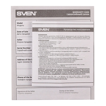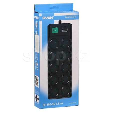 Sven SF-10E-16, 10 розеток, 1.8м, Black желілік сүзгісі