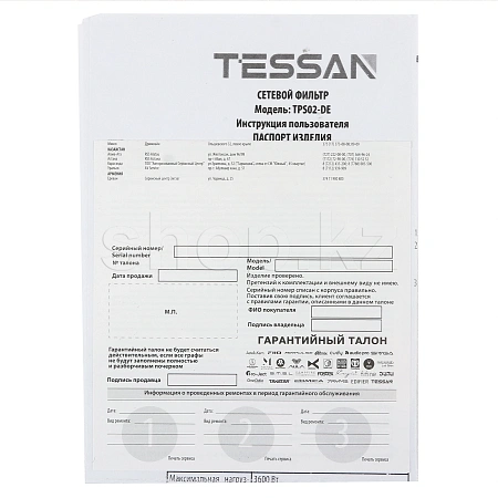 Tessan TPS02-DE, 12 розеток, 3хUSB, 2м, Black желілік сүзгісі