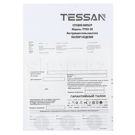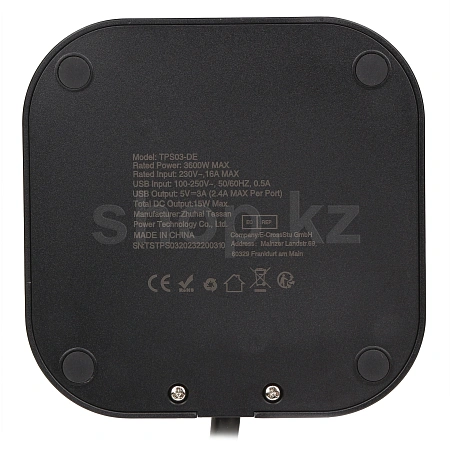 Tessan TPS03-DE, 8 розеток, 3хUSB, 2м, Black желілік сүзгісі