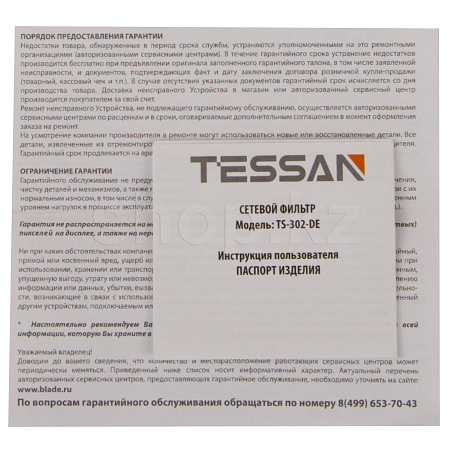 Tessan TS-302-DE, 4 розетка, 3хUSB, Grey желілік сүзгісі