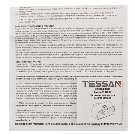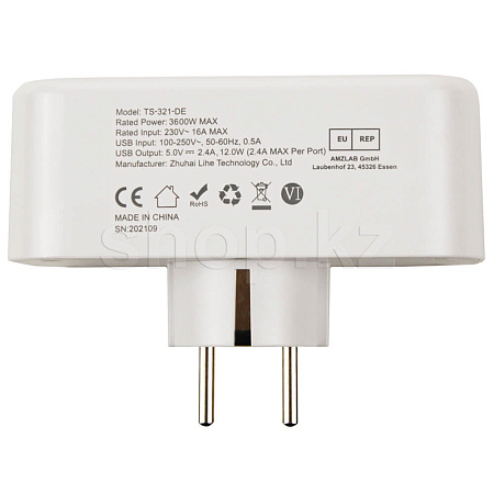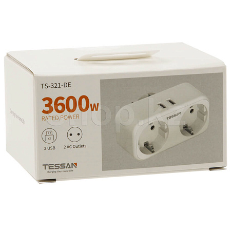 Сетевой фильтр Tessan TS-321-DE, 2 розетки, 2хUSB, White