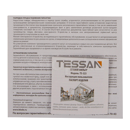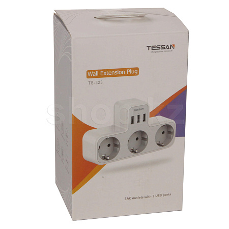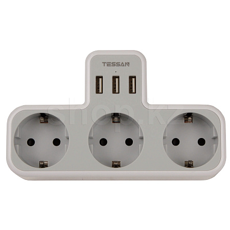 Tessan TS-323, 3 розетка, 3хUSB, Grey желілік сүзгісі