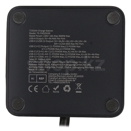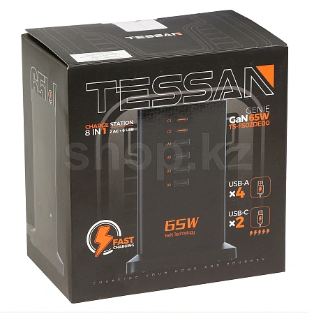 Сетевой фильтр с 2 розетками 220В, 4 портами USB-A, 2 портами USB Type-C (65 Вт, технология PD и полупроводник GaN для ультрабыстрой зарядки ваших устройств). Кабель 2м. Компактный дизайн. Высокая скорость зарядки. Защита от перегрева и перегрузки.