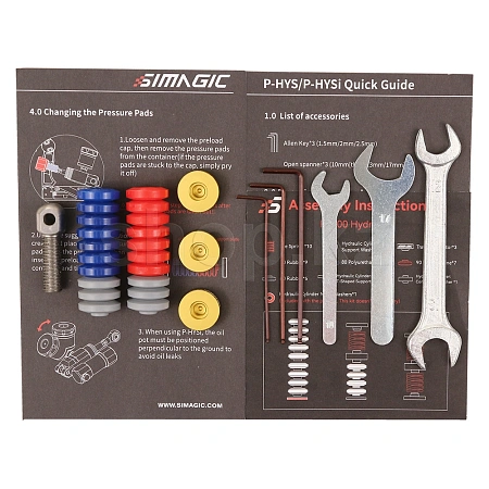 Система педали Simagic Hydraulic System устанавливается на место штатной системы педали газа. Подходит только для педалей Simagic P1000. В комплекте идут эластомеры и крепежные элементы.