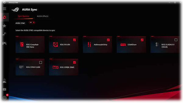 Armory Crate - это программная утилита, которая обеспечивает централизованное управление поддерживаемыми игровыми продуктами ROG. Благодаря единому интуитивно понятному интерфейсу Armory Crate дает вам возможность управлять всем вашим снаряжением с подсветкой Aura.