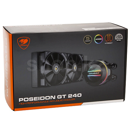 Компания Cougar представляет системы жидкостного охлаждения «всё в одном» серии Poseidon-GT. Радиатор изготовлен из алюминиевого сплава. Он соединён с водоблоком при помощи патрубков длиной 400 мм. Помпа работает со скоростью до 3200 оборотов в минуту.