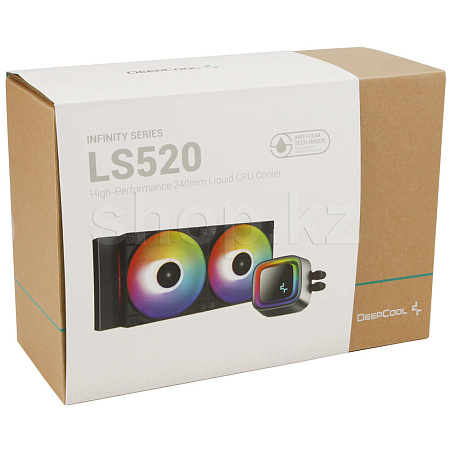 Жидкостный кулер премиум-класса DeepCool LS520 для процессоров обеспечивает максимальную эффективность охлаждения и низкий уровень шума благодаря 240-мм радиатору, двум вентиляторам FC120 A-RGB PWM и зеркальной крышке с эффектом бесконечности.