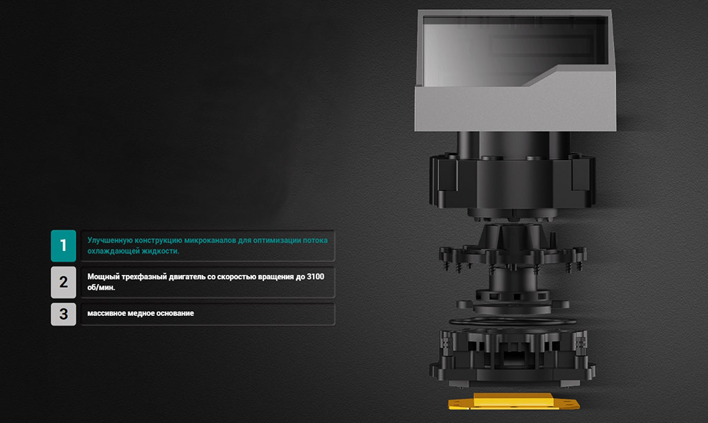 Создан на основе нашего высокопроизводительного водяного насоса 4-го поколения, который обеспечивает максимальную эффективность охлаждения и включает: