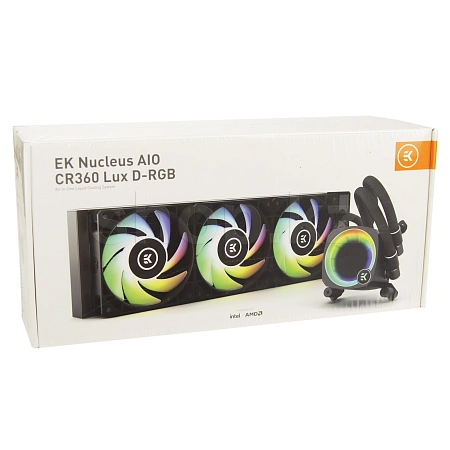 EK-Nucleus AIO CR360 Lux D-RGB — это универсальное решение для жидкостного охлаждения, предлагающее стильный эффект градиентного освещения в виде вентилятора на насосном агрегате, отвечающее вашим потребностям в современной эстетике адресуемой RGB. Он спроектирован так, чтобы соответствовать большинству популярных корпусов, представленных сегодня на рынке, и оснащен тройным вентилятором и тонким 27 мм радиатором.