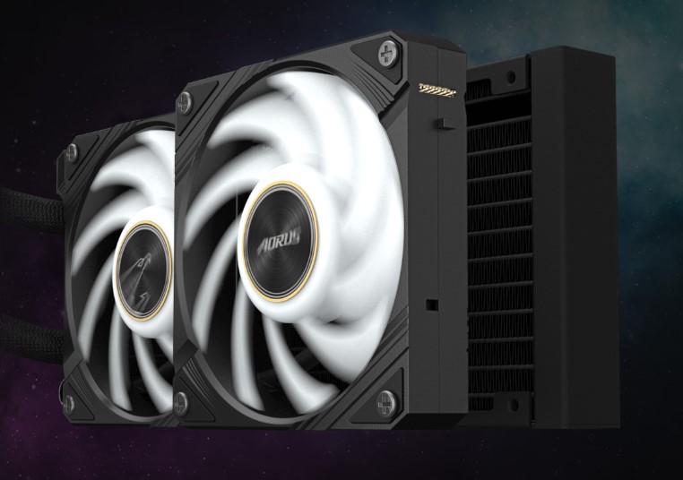 Толық түсті СКД дисплейі бар AORUS WATERFORCE x II 240 айналмалы салқындату жүйесі, екі 120 мм ARGB желдеткіші.