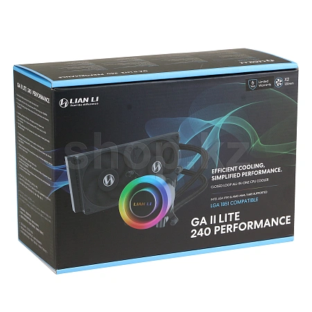 Необслуживаемая СЖО для процессора LIAN LI GALAHAD II LITE 240R имеет защиту от протечек. Отвод тепла от радиатора обеспечивают два вентилятора диаметром 120 мм с диапазоном скорости вращения от 300 до 2500 об/мин. В комплект входит термопаста, предназначенная для нанесения на крышку процессора перед установкой водоблока.