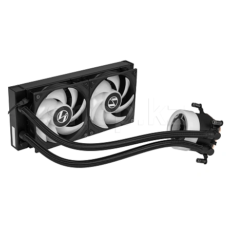Система жидкостного охлаждения LIAN LI GALAHAD II LITE 240R в черном исполнении оснащена медным водоблоком и алюминиевым радиатором длиной 276 мм, благодаря чему её можно установить даже в компактный корпус. Универсальная модель совместима с процессорами на сокетах AM5, LGA 1700 и рядом других разъёмов. В качестве теплоносителя используется жидкость, циркулирующая между водоблоком и радиатором по гибким шлангам длиной 400 мм.