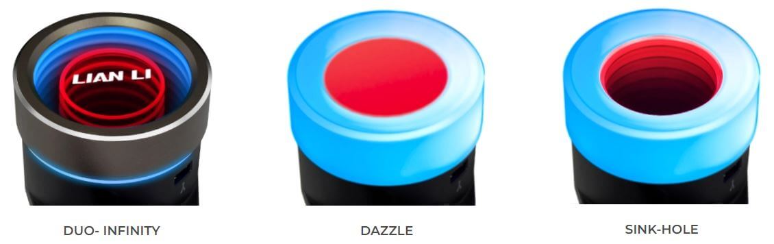 Крышка насоса серии Galahad II Trinity имеет три взаимозаменяемых дизайна, каждый из которых имеет уникальный внешний вид, и два цветных кольца, которыми можно индивидуально управлять с помощью различных световых эффектов.