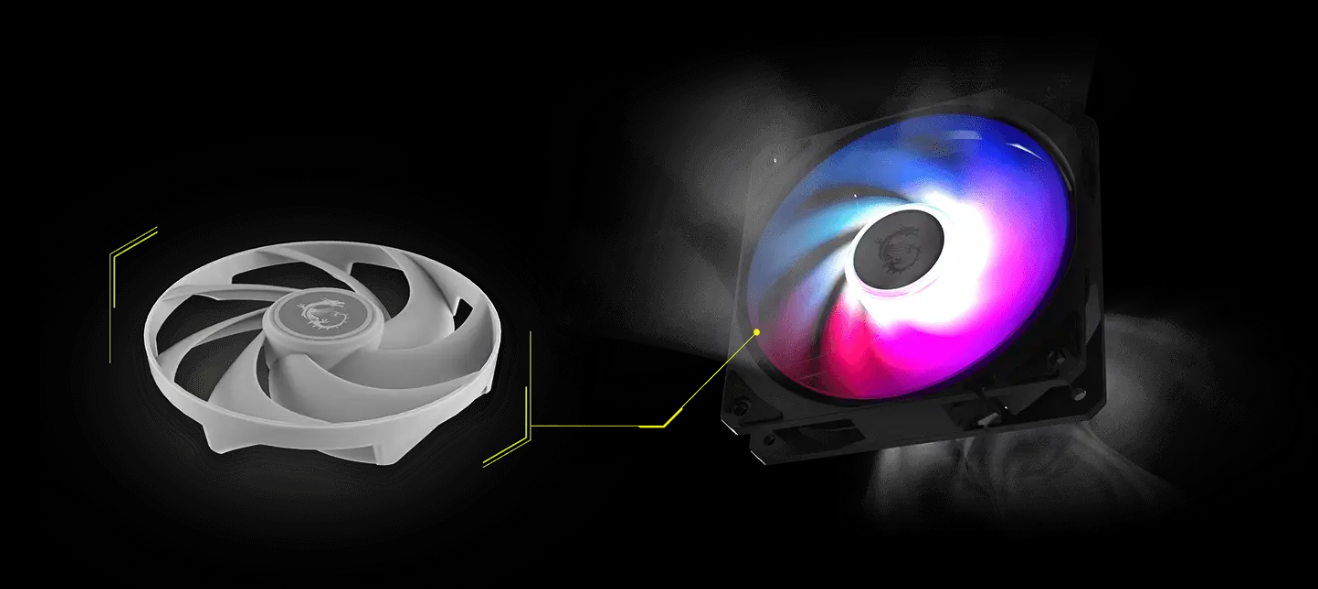 Вентилятор CycloBlade 7 от MSI с гибридным дизайном лопастей создаёт мощный воздушный поток и высокое статическое давление, обеспечивая экстремальное охлаждение при низком уровне шума. ARGB GEN2 подсветка подчёркивает стиль вашего ПК, что делает этот вентилятор идеальным выбором для киберспортсменов.