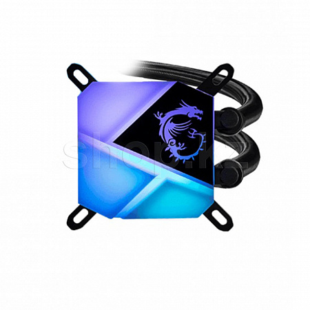 Ватерблок системы водяного охлаждения MAG CORELIQUID C оснащается адресуемой подсветкой большой площади, которая станет украшением любой компьютерной сборки. Она разделена на четыре фрагмента, три из которых – это собственно подсветка, а четвертый служит для отображения логотипа MSI.