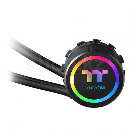 это готовая к использованию замкнутая система жидкостного охлаждения с подсвечиваемыми вентиляторами Riing Duo и водоблоком. Подсветку обеспечивают полноцветные светодиоды адресного типа управляемые специальным цифровым контроллером. Кроме того, унифицированная система крепления поддерживает все современные процессорные разъемы от Intel и AMD.