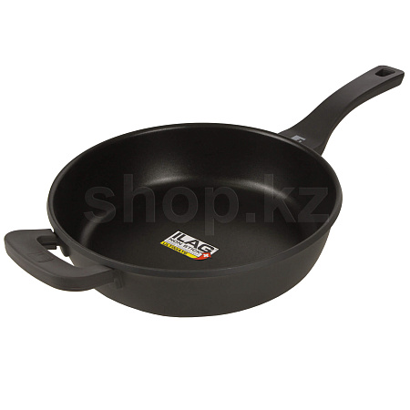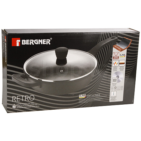 Сковорода c крышкой Bergner Retro BG-30736-NP из литого алюминия, размером 28 x 6 см. Внутреннее трехслойное покрытие ILAG ultimate. Эргономичная ручка с покрытием soft touch.