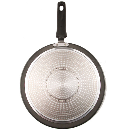 Диаметр рабочей поверхности сковороды составляет 24 см. Материал ручки из бакелита и не нагревается. На ней расположена петля для подвешивания. Корпус сковороды алюминиевый, она совместима с видами плит такими как газовыми, электрическими, стеклокерамическими.