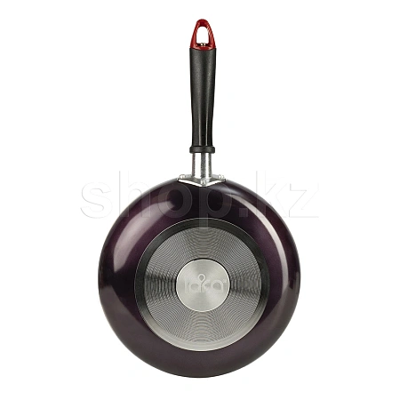 Корпус выполнен из высококачественного легкого штампованного алюминия с прекрасными теплопроводными свойствами. Внешнее жаропрочное покрытие сливового цвета. Надежная ручка из огнеупорного бакелита черного цвета приварена к стенке и имеет петлю для подвешивания.
