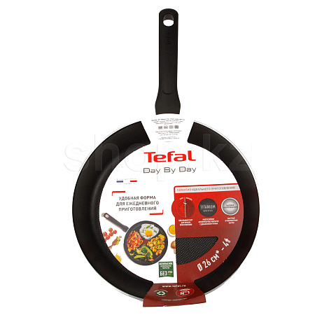 Сковорода Tefal серии Day By Day черного цвета оснащена индикатором Thermo-Signal, который оповестит об оптимальном уровне нагрева для начала приготовления. Изнутри и снаружи она снабжена антипригарным покрытием Titanium.