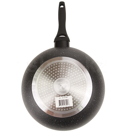 Ручка изготовлена из бакелита с Soft-touch покрытием. Сковорода совместима со всеми видами плит, включая индукционную.