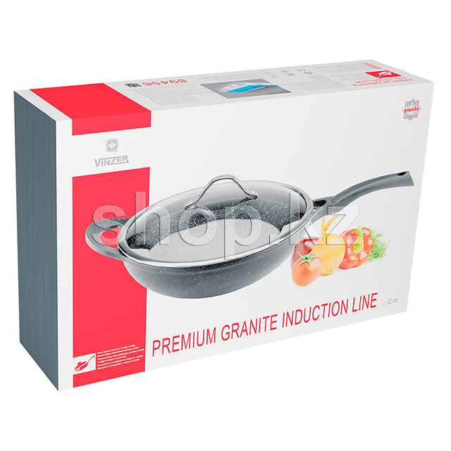 Сковорода WOK Vinzer Premium Granite Induction Line 32 см, с крышкой