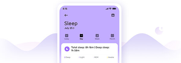 Контролирует ваш сон 24 часа в сутки и предоставляет подробные отчеты о глубоком сне, легком сне и стадиях быстрого сна, чтобы помочь вам узнать, что происходит во время вашего сна.