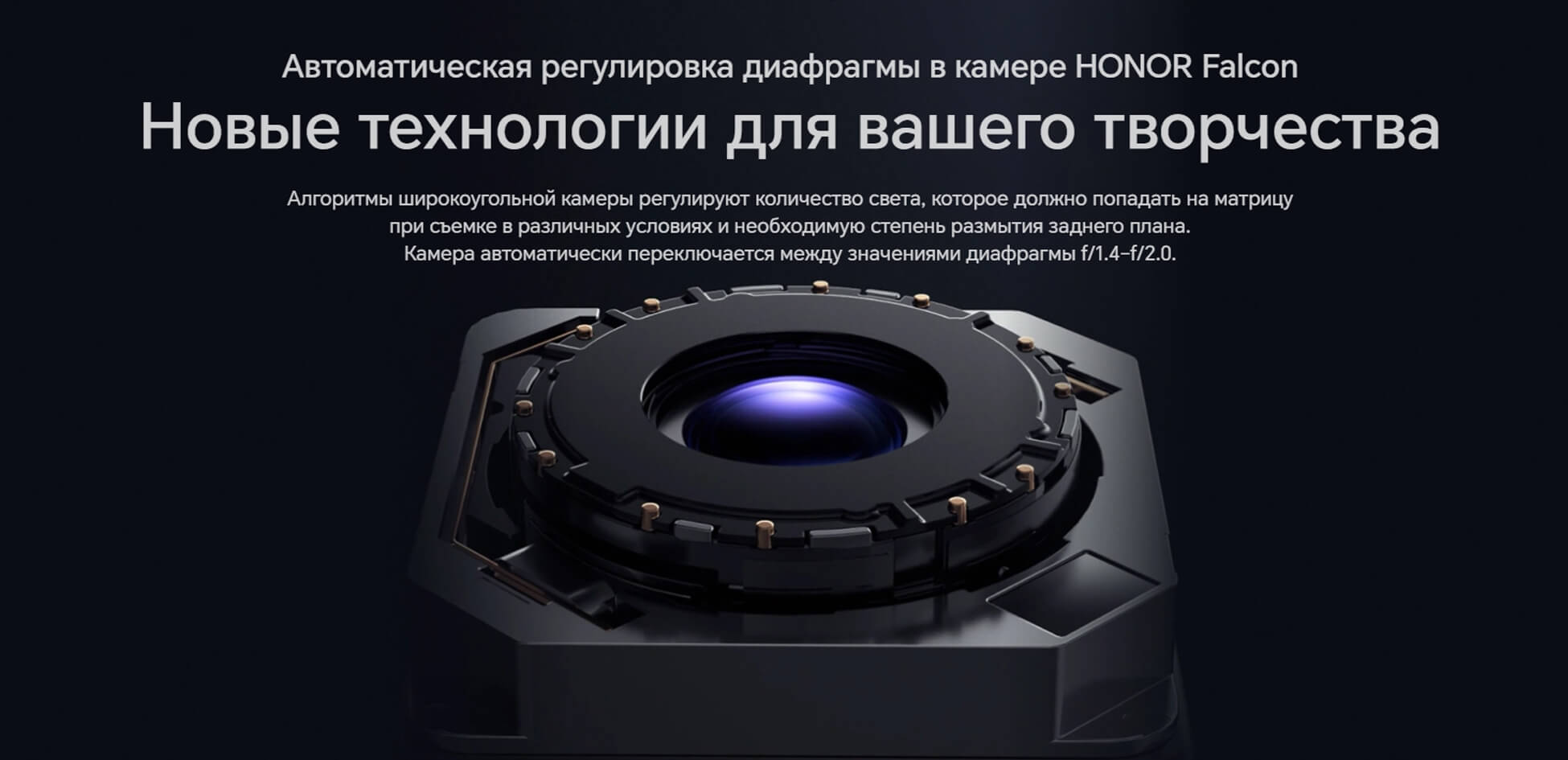 Камера HONOR Falcon снаружи — это фирменный элегантный дизайн с симметричным расположением элементов, а внутри — инновации инженеров, программистов и технологии искусственного интеллекта.