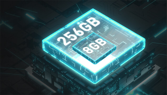 256 Гб ROM позволят вам хранить все ваши изображения, видео, музыку и другие файлы. Благодаря технологии расширения памяти вы можете увеличить RAM на 5 Гб. Это позволит держать вам больше приложений открытыми в фоновом режиме.
