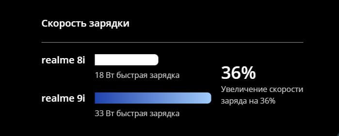 realme 9i заряжается на 36% быстрее, чем realme 8i. Смартфон оснащен пятиступенчатой защитой, обеспечивая более быструю и безопасную зарядку.