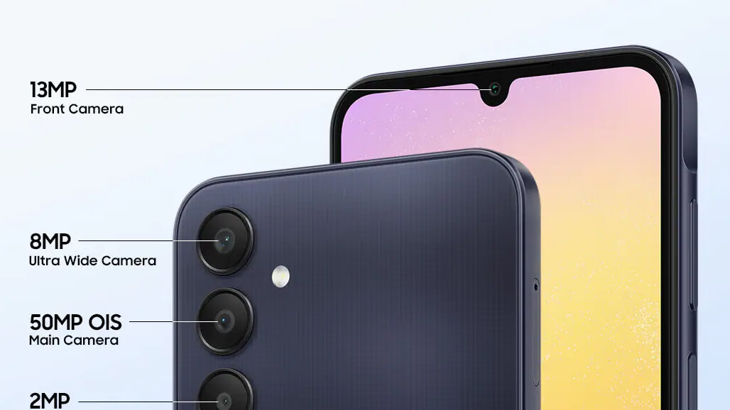 • Улучшенная съемка селфи Galaxy A25 5G с улучшенной фронтальной камерой 13 Мп снимает четкие и яркие селфи.