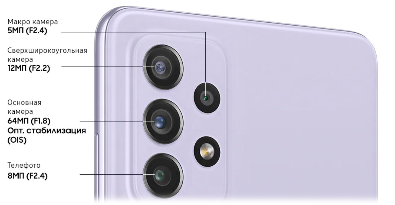 32МП фронтальная камера Galaxy A72 позволяет делать четкие селфи снимки высокого разрешения. Благодаря эффекту "боке" с мягким размытием фона, ваше лицо окажется в центре внимания.