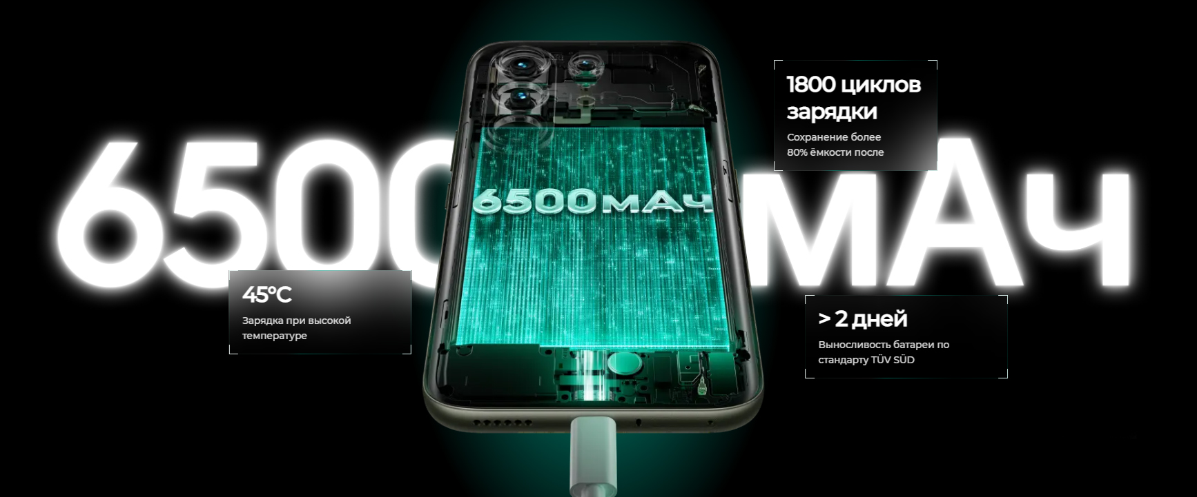 Сыйымды батарея бір зарядта ұзақ жұмыс уақытын қамтамасыз етеді. Type-C арқылы жылдам зарядтауды қолдау зарядты тез қалпына келтіруге және әрқашан байланыста болуға мүмкіндік береді.