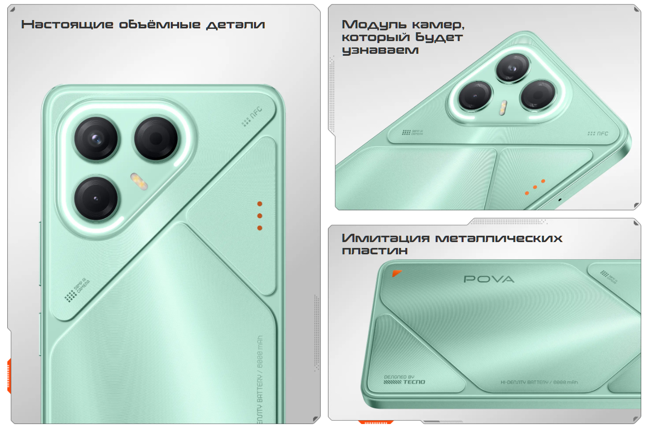 Вдохновлённый лучшими продуктами промышленного дизайна, POVA 7 5G отражает в себе эстетичный минимализм и внимание к деталям, делая внешний вид смартфона инновационным, и в то же время простым и понятным.