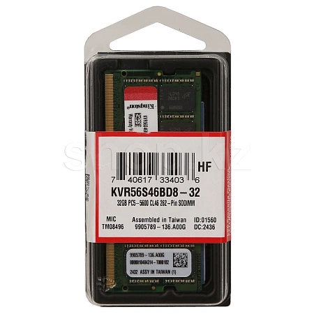 SO-DIMM 32GB DDR5 PC44800/5600MHz Kingston, BOX (KVR56S46BD8-32)
