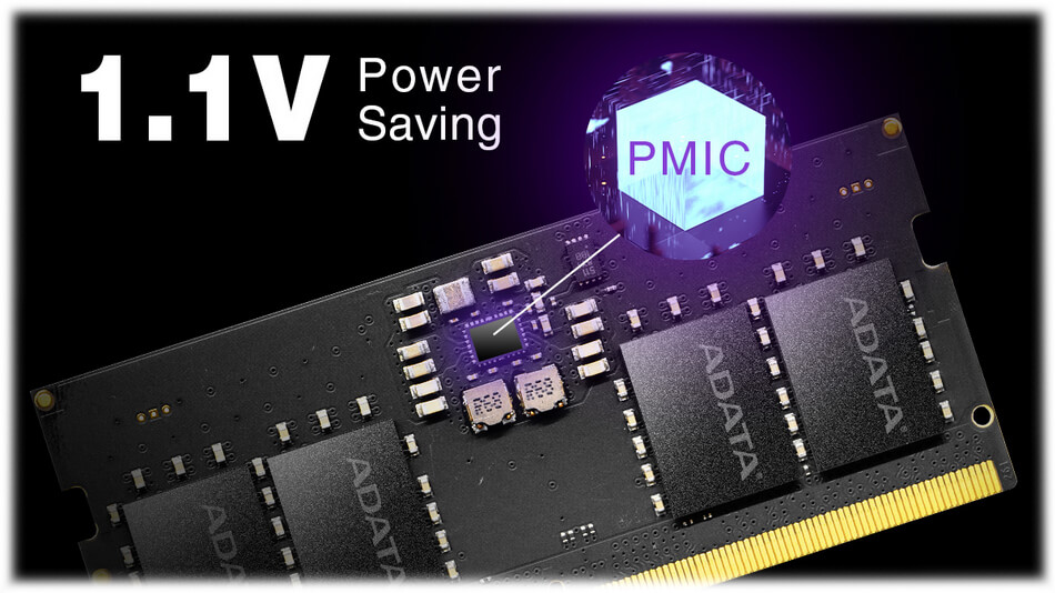 Модуль нового поколения расходует всего 1.1 В, что на 8% экономичнее, чем у DDR4. Более того, он оснащен интегральной схемой управления питанием (PMIC) для повышения стабильности подачи электропитания.