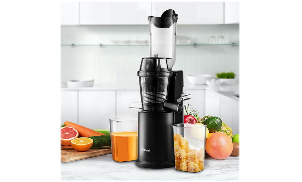 Шнековая соковыжималка Kitfort КТ-1118 позволяет бережно отжимать максимально возможное количество сока из фруктов, овощей и зелени, сохраняя все полезные вещества: витамины, аминокислоты и минералы.