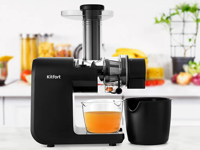 Шнековая соковыжималка Kitfort КТ-1124 с горизонтальным отжимом позволяет на низких оборотах бережно отжимать максимально возможное количество сока из фруктов, овощей и зелени, сохраняя все полезные вещества: витамины, аминокислоты и минералы.