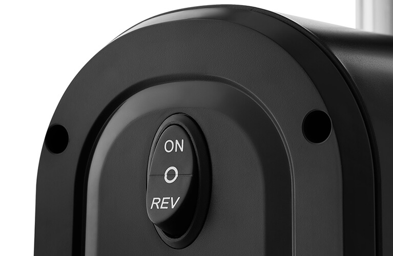 На боковой поверхности соковыжималки находятся кнопки включения/выключения устройства и кнопка реверса для очистки шнека после отжима и лёгкого извлечения.