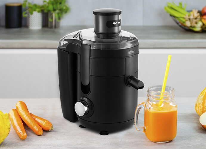 Компактная и стильная центробежная соковыжималка КТ-1126 с широкой горловиной позволяет отжимать сок из фруктов, овощей и зелени с сохранением всех витаминов, аминокислот и минералов. Использует технологию отжима сока при помощи центрифуги.