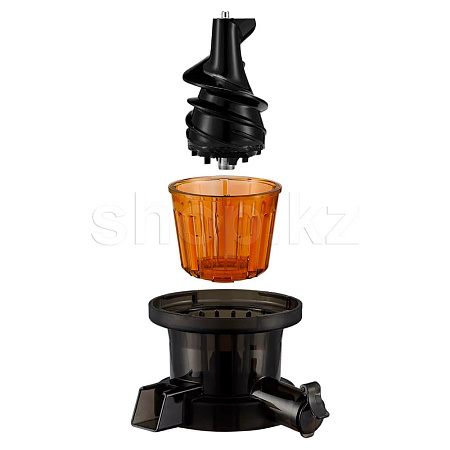 Спиралевидный шнек-пресс дробит и прессует продукт, а затем продавливает мякоть, которая поступает к нему через загрузочный лоток через фильтр, отделяя жмых от сока. Шнек отлит из ультрапрочного пластика, который хорошо выдерживает большие нагрузки.