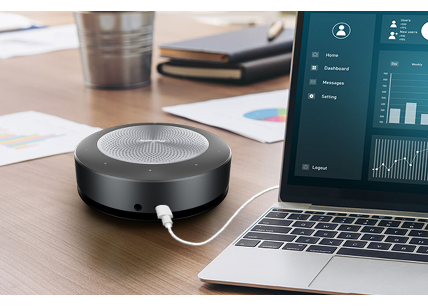 UC SPK01L поддерживает всенаправленную аудиосъёмку на 360 градусов, гарантируя, что каждый голос в конференц-зале будет передан участникам, подключающимся удаленно.