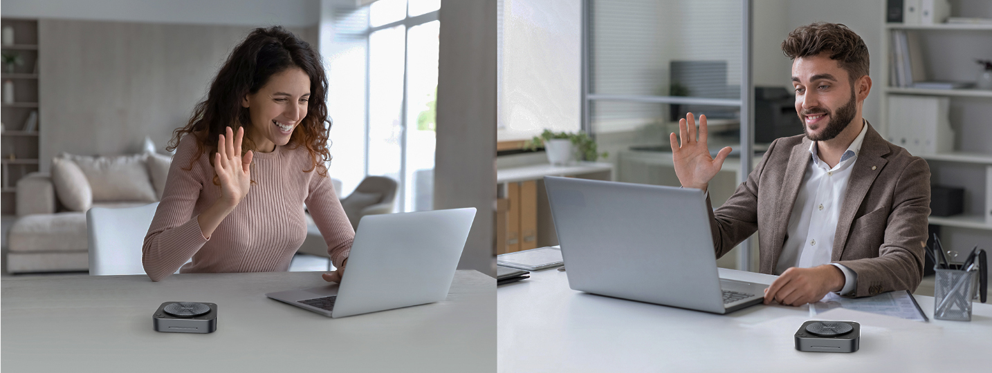 Сблизьте участников встречи с помощью иммерсивного звука без помех. Благодаря полнодуплексному аудио обе стороны могут общаться в режиме реального времени без помех. BM35 передает звук от каждой стороны по отдельным каналам, обеспечивая естественный и органичный подход к проведению современных встреч.