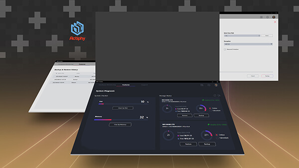 Переносите данные, отслеживайте показатели работоспособности и производительности накопителя в режиме реального времени с помощью MSI Center. Предотвратите потерю данных с помощью программы Actiphy, которая включает функции резервного копирования и восстановления.