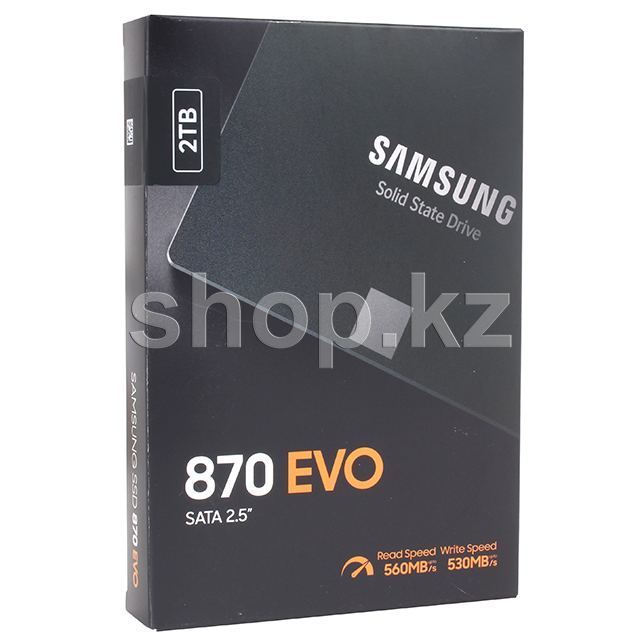 SATA интерфейсі бар 870 EVO дискісі максималды сериялық жазу/оқу жылдамдығын шамамен 560/530 МБ/с қамтамасыз етеді. Intelligent turbowrite интеллектуалды жазу технологиясы өзгермелі буфердің ұлғаюымен жазу жылдамдығын және жоғары өнімділік тұрақтылығын арттыруға мүмкіндік береді.