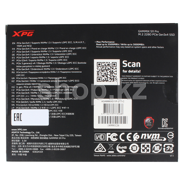 Өте жылдам PCIe gen3x4 интерфейсі және NVMe 1.3 қолдауы бар GAMMIX S11 Pro секундына 3500/3000 МБ дейін керемет жоғары оқу / жазу жылдамдығын ұсынады. Сонымен қатар, S11 Pro қатты күйдегі дискінің температурасын 10 ° C-қа дейін төмендететін радиаторға салынған, SLC кэштеуімен, DRAM кэшімен, буфермен, деректерді қорғаумен және LDPC ecc технологиясымен бірге 3D NAND Flash-пен жабдықталған, ол қарқынды ойындар, рендеринг, үдеткіш және т. б. кезінде де жоғары жылдамдықтар мен деректердің тұтастығын сақтайды жоғары талаптары бар қосымшалар.