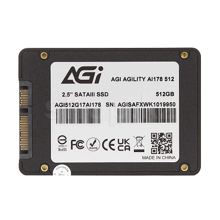 AI178 - это самый новый твердотельный накопитель AGI. Он обладает интерфейсом SATA III нового поколения и обеспечивает скорость передачи 6 Гб/с, что позволяет достичь скорости чтения / записи до 550 / 510 МБ/с
