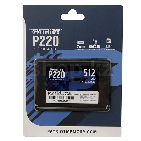 Patriot 's SSD P220 2.5" заманауи SATA III контроллерімен жабдықталған; құрылғының жұмыс жылдамдығы сәйкесінше 550 МБ/С және 500 Мб/с дәйекті оқу мен жазуға жетеді.