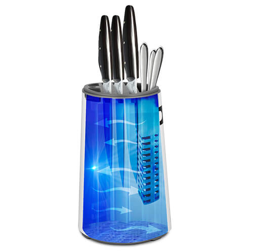 Стерилизатор для ножей KT-2055 – это идеальное устройство для тех, кто ценит своё здоровье и стерильность на кухне. Прибор продезинфицирует ультрафиолетовым излучением ваши ножи и другие кухонные приборы после работы с сырым мясом, рыбой и овощами!