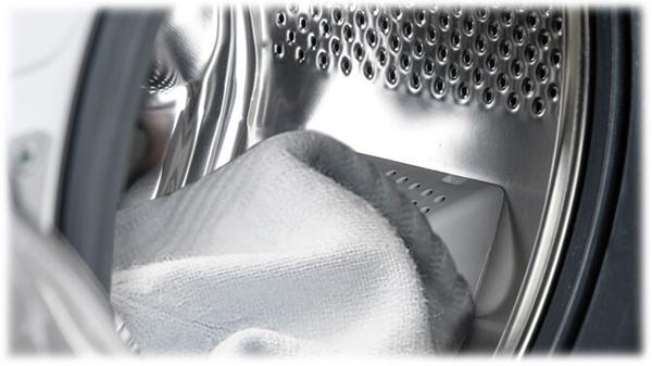 Барабан из нержавеющей стали с особой формой отверстий и гребней для равномерного распределения белья, лучшего смачивания и деликатной стирки.